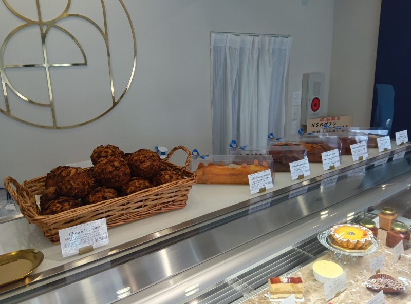 ショーケースの天板には、注文をいただいてからクリームを詰める「シューアラクレーム」(500円)や、5種類のケーク(2300円〜2500円)、さらにオンディーヌオリジナルの珈琲豆(1300円)が陳列されています。